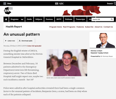 In November 2014 I reported on the case of nurse Ben Geen who was convicted in 2006 for murdering 2 patients and seriously harming 15 others. I had been asked to produce an expert report on the 'statistical coincidences' in the case for the Criminal Cases Review Board.
